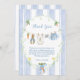 ¡Una entrega encantadora del Jardín del Sr. McGregor! La tarjeta de agradecimiento presenta un marco pintado a mano personalizado de un patrón de rayas verticales azul crujiente acentuado por una corona verde exuberante, creando un aspecto limpio, clásico y acogedor. En el centro, un tendedero de acuarela dulce adorna con orgullo pequeños objetos adorables, cada uno de ellos sutilmente pintado por Peter Rabbit. Cambie fácilmente los detalles a los suyos y si desea cambiar el estilo, color, tamaño y ubicación del tipo de letra,