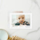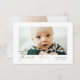 Petite Elegant Gold Script Baby Photo You Card. La parte de atrás incluye un mensaje de la familia y una segunda foto. Haga clic en el botón de edición para personalizar este diseño con sus fotos y detalles.