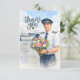 Tarjeta De Agradecimiento Pilot holds flowers on the runway