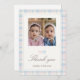 Thank guests with a classic photo thank you card featuring a teddy bear design and pink and blue plaid accents.