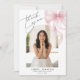 Share your gratitude in style with this elegant two‑sided pink bow graduation thank‑you card. The front features a clean, modern layout with a large airy pink bow and handwritten‑style “thank you” paired with your graduate’s photo and personalized details for a beautifully polished presentation. The back continues the refined aesthetic with a soft translucent bow and a heartfelt message, creating a warm and meaningful way to thank friends and family for their support. Perfect for sending after ceremonies, parties, or open houses, this design blends simplicity and sophistication for a memorable expression of appreciation.