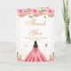 Tarjeta De Agradecimiento Pink Floral Dark Skin Girl Sweet Sixteen