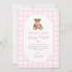Tarjeta De Agradecimiento Pink Gingham Teddy Bear Beary First Birthday
