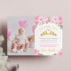 Tarjeta De Agradecimiento Pink Gold Floral Crow Princess Birday