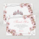 Tarjeta De Agradecimiento Pink Silver Tiara Butterfly Quinceañera