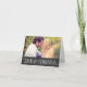 La plantilla de diseño de tarjeta de "Gracias" con estilo de pizarra de tiza doblada presenta texto estilizado con apariencia de tiza blanca manuscrita sobre una imagen de fondo de pizarra de tiza negra texturizada, así como un mensaje que se puede personalizar en el interior de la tarjeta.