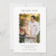Un boda de moda gracias tarjeta de fotos con tu foto boda favorita en forma de vieira ondulada sobre fondo rosa y texto de terracota. Añadir un mensaje personal al reverso.