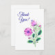 Tarjeta de agradecimiento con flores moradas, inspirada en pinturas decorativas del patrimonio ucraniano.