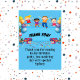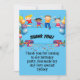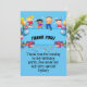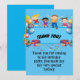 Tarjeta de agradecimiento plana de fiesta de cumpleaños feliz colorida, niños celebrando con globos y un mensaje del cumpleañero. ¡Vea la vajilla del tema coincidente en mi tienda!