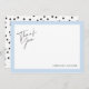 La parte posterior presenta un patrón moderno de manchas negras aleatorias. La parte delantera presenta una fuente de estilo manuscrita con la palabra 'gracias' y el nombre que elijas en la parte inferior de la tarjeta que se puede personalizar con cualquier texto que necesites.