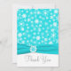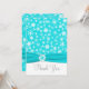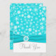 Esta tarjeta de agradecimiento festiva de copos de nieve turquesa y blanca tiene una cinta azul acuarela FAUX y un medallón de copo de nieve. Coincide con la invitación de boda que se muestra a continuación. También hay una pequeña tarjeta de agradecimiento estilo tarjeta de saludo que se muestra a continuación, si lo prefiere. Si necesita otros artículos coincidentes en este diseño, envíe su solicitud a niteowlstudio@gmail.com.