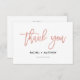 LINA • Esta dulce tarjeta de agradecimiento en rosa dorado y blanco asocia el glamour elegante de la textura de lámina de "seudo" oro rosa con la sencillez del texto y las fuentes manuscritas. La colección coordina bien con los colores de bodas de otoño. Además, con el toque de cuento de hadas en un estilo moderno, esta colección es una opción increíble para bodas de princesa y otros eventos con tema de Cenicienta.