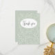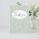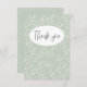 Patrón de hoja abstracta de acuarela verde salvia y fondo coordinado con “Gracias” en tipografía moderna.