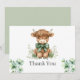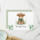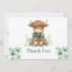 Muestre su aprecio de la manera más encantadora con nuestra tarjeta de agradecimiento de vaca de las Highlands verdes. Con una adorable vaca de las Highlands rodeada de delicados acentos florales, esta tarjeta añade un toque rústico y caprichoso a su mensaje sincero. Perfecta para agradecer a los invitados después de una fiesta de cumpleaños con tema de granja, celebración en el campo o cualquier ocasión especial.
