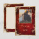 Envía esta hermosa tarjeta de agradecimiento de boda con foto a todos tus familiares y amigos para agradecerles con elegancia. El fondo rústico escarlata es un look chic muy rico. Esta es una tarjeta con un aspecto encantador y vintage. Recortada en brillo dorado falso para establecer el tono de elegancia romántica y clásica. Los salpicaduras doradas terminan esta bonita nota de agradecimiento de boda. Hermosa para cualquier estación.
