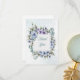 Este artículo tiene un fondo azul claro acompañado de flores azules y moradas. Es una tarjeta de agradecimiento muy genérica con un dorso en blanco que se puede utilizar para cualquier ocasión.