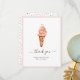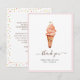 Tarjeta de agradecimiento plana adorable para ducha de novia con helado con el nombre de la novia y mensaje de agradecimiento en la parte trasera con ilustración de acuarela de cono de helado con anillo de compromiso encima. Puedes eliminar el mensaje e incluir tu propio mensaje o eliminar.