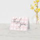 Tarjeta de agradecimiento plegada con gingham rosa