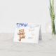 Tarjeta de agradecimiento doblada para una ducha de bebé decorada con un adorable oso de peluche montando globos en las nubes.