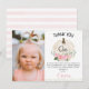 Pink Floral Pumpkin Foto Cumpleaños Gracias Tarjeta Cute caída, juego de calabaza chica cumpleaños carta de agradecimiento con una gran calabaza blanca, arreglos florales rosados y algunos puntos purpurinas de oro. La foto de tu pequeña niña aparece en el lado izquierdo de la tarjeta. Esta tarjeta de agradecimiento de pumpkin para chicas es una manera dulce de agradecer a los invitados por venir a la fiesta de cumpleaños de su niñita de otoño o de calabaza de otoño.