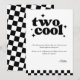 Di "gracias por celebrar mi cumpleaños dos cool" con esta elegante tarjeta de agradecimiento retro. Diseñada con tipografía atrevida y juguetona y un patrón de tablero de ajedrez en blanco y negro de moda, esta tarjeta es perfecta para una fiesta de cumpleaños número 2 con el tema Two Cool.