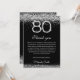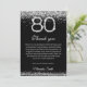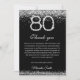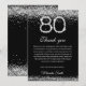 Celebre un hito con nuestra elegante tarjeta de agradecimiento por el 80 cumpleaños en plata y negro. Con acentos de diamantes brillantes, esta tarjeta elegante es perfecta para expresar gratitud después de una fiesta de cumpleaños número 80. Personalice con mensajes de tarjeta de cumpleaños sinceros para agradecer a los invitados por su amor y regalos. Impreso en papel premium, es un recuerdo elegante para un feliz 80 cumpleaños.