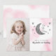 ¡Dos a la luna! Segundo cumpleaños con luna plateada y estrellas sobre fondo de acuarela rosa. Plantilla de foto vía Pixabay con licencia CC0 y debe ser reemplazada con tu propia foto