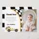 Tarjeta de agradecimiento por fiesta de cumpleaños amarilla de Race Car