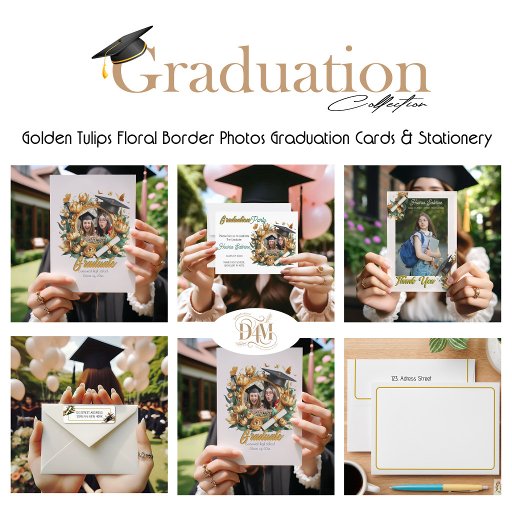 Modern Golden Tulips Floral Border GraduationDiseñado por Houria Sabrine