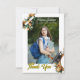 Tarjeta de agradecimiento Gold Floral Border Photo Gradraduation, Clase de 20XX, Una moderna y elegante fiesta de graduación de frontera dorada en 3d Gracias Tarjeta, decorada con flores doradas en 3d y hojas verdes, añada tu foto al fondo. Esta carta de agradecimiento para graduación incluye una elegante foto de Floral Border con modernos recubrimientos de caligrafía y graduación. Gracias detalles en el frente y en la parte posterior. Puedes modificar el nombre, la dirección, la foto es totalmente personalizada y única. ¿Qué opinas al respecto?