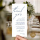 Comparte el amor y muestra tu agradecimiento a tus invitados cuando se sientan en su asiento y leen esta encantadora carta de agradecimiento personalizada. ¡Es una manera maravillosa de empezar tu celebración especial del día! Con esta tarjeta se establecerá el tono de un evento inolvidable. La tarjeta de agradecimiento incluye el diseño moderno de la escritura Navy Blue, añadiendo un toque de elegancia eterna a su celebración. Diseñado por TeeshaDerrick