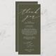 Esta es la escritura modernista y moderada minimalista, en la cena boda con temática negra y blanca, donde se pone verde oliva Gracias Cartas. Comparte el amor y muestra tu agradecimiento a tus invitados cuando se sientan en su asiento y leen esta encantadora tarjeta de ajuste personalizada. ¡Es una manera maravillosa de empezar tu celebración especial del día!