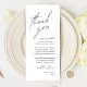 Esta es la tarjeta editable moderna, en diseño de escritura minimalista, tema blanco y negro, Colocar configuración de tarjetas de agradecimiento. Comparte el amor y muestra tu agradecimiento a tus invitados cuando se sientan en su asiento y leen esta encantadora tarjeta de ajuste personalizada. ¡Es una manera maravillosa de empezar tu celebración especial del día!