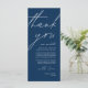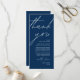 Comparte el amor y muestra tu aprecio a tus invitados, cuando se sientan en su asiento y leen esta encantadora carta de agradecimiento personalizada con un elegante tema azul marino. ¡Es una manera maravillosa de empezar tu celebración especial del día! Con esta tarjeta se establecerá el tono de un evento inolvidable. La tarjeta de agradecimiento incluye un tema de escritura de diseño moderno, añadiendo un toque de elegancia eterna a su celebración. Diseñado por TeeshaDerrick