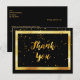 Una elegante tarjeta de agradecimiento para una celebración de cumpleaños número 50. Un color de fondo negro y un marco dorado falso. Con una lluvia de confeti dorado. En la parte delantera un estilo de letra a mano y el texto: ¡Gracias!