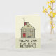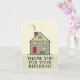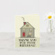 Una tarjeta profesional de agradecimiento por recomendación que presenta una encantadora casa ilustrada con una puerta roja, chimenea roja y porche delantero acogedor. El mensaje en negrita “¡GRACIAS POR SU RECOMENDACIÓN!” la hace ideal para agentes inmobiliarios, corredores de hipotecas o proveedores de servicios que desean expresar agradecimiento a clientes, colegas o socios. En blanco en el interior para su nota manuscrita. Una forma cálida y amigable de mantenerse conectado.