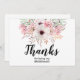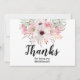 Tarjeta de agradecimiento por ser dama de honor con estilo de flores campestres y letra negra elegante. La parte trasera de la tarjeta es de color blanco clásico.