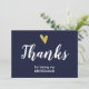 Elegante tarjeta de agradecimiento de boda con corazón de falso foil dorado y escritura blanca moderna por ser mi dama de honor. La parte delantera y trasera de la tarjeta es de un azul marino chic.
