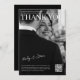 Esta tarjeta de agradecimiento minimalista presenta una impresionante foto en blanco y negro de la pareja en un diseño elegante al estilo de una revista. Un código QR escaneable añade un toque moderno perfecto para enlazar con tu galería de boda o mensaje. Personalizable la parte frontal y trasera con texto blanco elegante para un diseño limpio y atemporal.