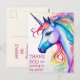 Expresa tu gratitud con nuestra Tarjeta de Agradecimiento Postal de Cumpleaños de Unicornio Caprichoso. Esta vibrante postal presenta una colorida ilustración de un unicornio, añadiendo un toque de capricho y magia a tu mensaje sincero. La postal está personalizada con varias líneas de texto personalizado, creando una hermosa plantilla que se puede editar en una tarjeta única y especial para el destinatario. Además, la plantilla deja amplio espacio en blanco para que agregues un mensaje manuscrito, infundiendo la tarjeta con un toque personal y calidez. Envía tus agradecimientos con un toque de encanto de unicornio y haz que el día de alguien sea aún más encantador.
