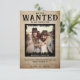 Tarjeta de agradecimiento de boda con póster de buscado de estilo retro vintage del siglo XIX con foto deteriorada. Personalízala con los detalles de tu evento y una fotografía de la pareja.