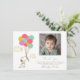 ¡Envíen un sincero agradecimiento que animará el ánimo de todos! Esta encantadora tarjeta de agradecimiento incluye un ilustracion de Snoopy flotando alegremente con un montón de globos coloridos. Es la manera perfecta de compartir gratitud por todos los maravillosos regalos y el amor recibido. Con un lugar para añadir una foto atesorada, esta tarjeta es un divertido recuerdo de un día verdaderamente especial y de celebración.