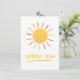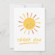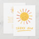 Una tarjeta de agradecimiento para la primera fiesta de cumpleaños de un niño alrededor del Sol con un sol lindo y un diseño moderno. Haga clic en el botón de edición para personalizar este diseño con sus datos.