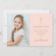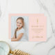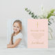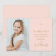 Con una firma dorada con el nombre y una foto especial en un fondo rosa rubor. Personalice con su foto y un mensaje especial de agradecimiento por la primera comunión en letras doradas elegantes en este diseño con estilo. Diseñado por Thisisnotme©