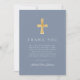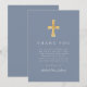 Tarjeta de agradecimiento de Primera Comunión moderna de niño religioso en azul polvoriento.