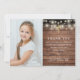 Con luces de cuerda y un nombre de firma de guión elegante en un fondo rústico de paneles de madera. Personalice con su foto y su primer mensaje especial de agradecimiento a la comunión sagrada en la moda grabando este diseño elegante. Diseñado por Thisisnotme©