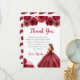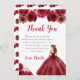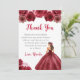 Esta dulce carta de agradecimiento de dieciséis años cuenta con una bella princesa en un vestido de bola rojo burdeos con arreglos florales. Es perfecto para una dulce fiesta de 16 años.