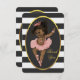 Tarjetas personalizadas de agradecimiento planas para baby shower de niñas con temática de bailarina étnica personalizada. Una tarjeta hermosa y moderna con un fondo contemporáneo de rayas negras y blancas y una forma ovalada elegante negra y de falso foil dorado con una adorable y linda princesa bebé afroamericana bailando con tutú y zapatos de ballet. Fuente cursiva dorada elegante. Agradecimientos dobles sided classy, chic, femenino, femenino, ornamentado para baby showers. Todo el texto es totalmente personalizable para adaptarse a tus necesidades - muchas fuentes y colores para elegir. Estas invitaciones personalizadas, únicas y originales son impresas en ambos lados. Si necesitas ayuda para personalizar tu producto, por favor contáctame a través de mi tienda y estaré encantado de ayudarte. POR FAVOR TEN EN CUENTA: Todos los elementos son gráficos impresos planos - no es foil dorado real.