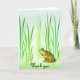 Esta tarjeta de agradecimiento muestra una pequeña rana verde femenina con un vientre amarillo sentado entre las hierbas en el estanque. Ella parece solitaria como si estuviera esperando a que su Príncipe Encantador apareciera.