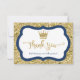 ¡Agradece a los clientes de la ducha con esta carta de agradecimiento temática de principito! Otros colores disponibles aquí: http://www.zazzle.com/collections/baby_shower_for_a_little_prince-119604608769793210 El purpurina y el Relieve metalizado son imágenes incrustadas y el diseño se imprimirá plano y sin la textura de purpurina real o Relieve metalizado.